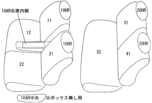 ※コンソールボックスのフタ用にカバー(10AR中央)が付属していますが、シートカバーを装着することでフタを閉じてロックをかける際、フタを押し込む力が必要になります。
